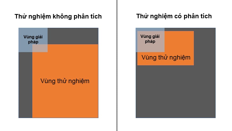 Tuy nhiên, nếu chỉ đơn giản là có ý tưởng và liên tục thử nghiệm, vùng thử nghiệm của chúng ta sẽ rất lớn, đòi hỏi nhiều công sức kiểm nghiệm. Tệ hơn, chúng ta dễ rơi vào cảnh quẩn quanh trong một góc mà không nhìn được một bức tranh lớn.